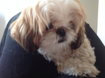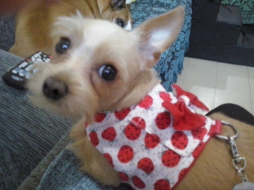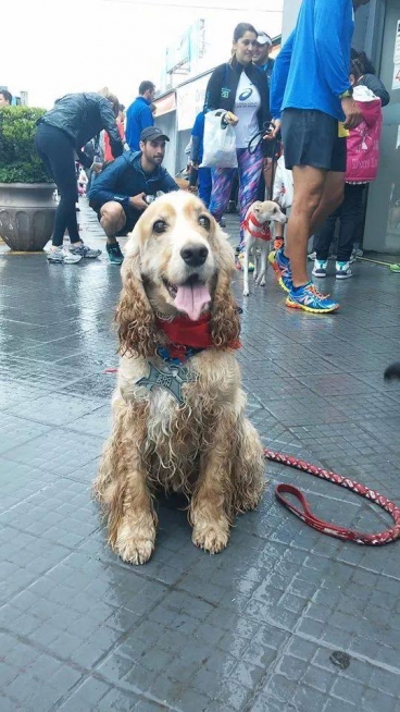 Scooby todo molhado depois de correr na DOG Run. Muito feliz com sua medalha no peito