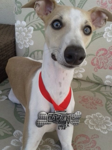 Zaira depois da prova Sp Dog Run com sua medalha!!! #spdogrun