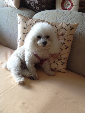 Poodle branco, 13 anos nome: Skoog